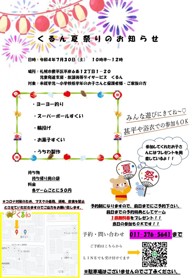7月30日にくるんにて夏祭りを開催いたします!
